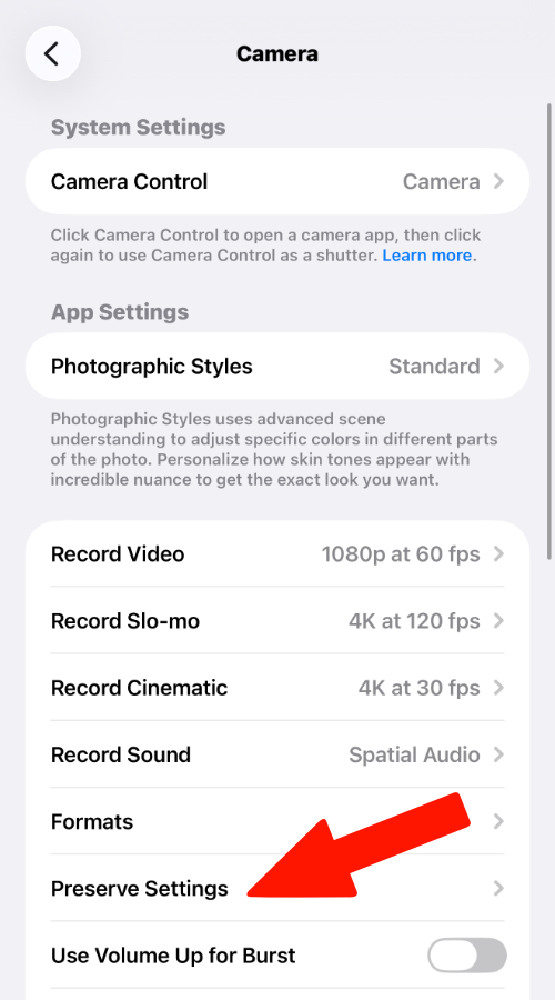 Funny enough, when I was trying to understand connecting Anima to the iPhone 16 Pro's camera button (a feature coming soon), I was digging in the Settings app under Camera. Lo and behold, there's a menu called "Preserve Settings", with ProRAW toggled off by default. You'd think your camera settings would save automatically, but they don't. From here I faced an interesting problem. What I set out to create originally was now redundant and unnecessary. Or so I thought...